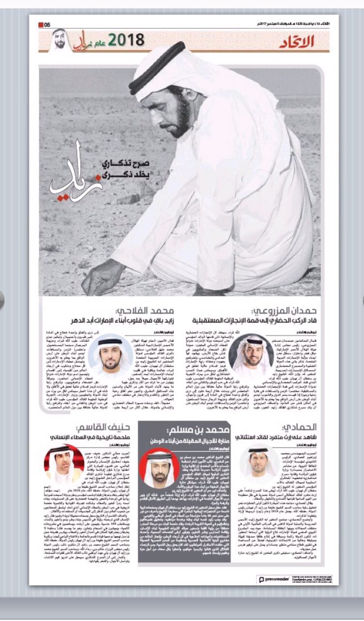محمد بن حم: الشيخ زايد ترك إرثاً ضخماً للتقدم والرفعة والعـز
